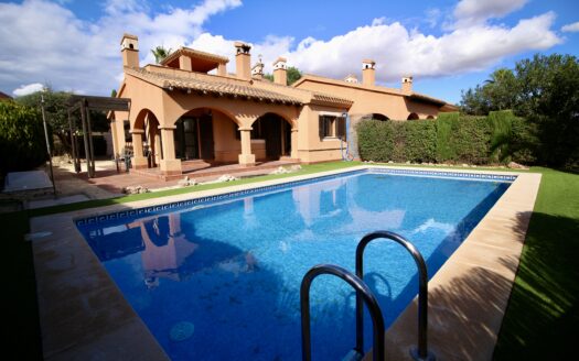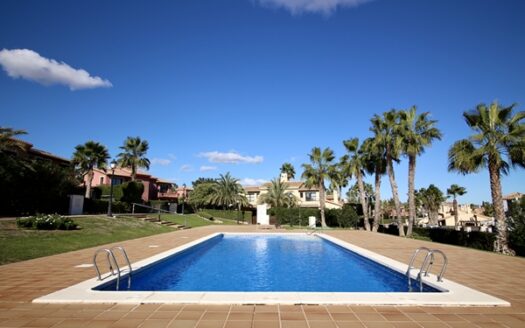 Beautiful 3-bedroom, 3-bathroom 2-storey villa with community pool at Hacienda del Álamo Golf Resort. Lovely plot This semi-detached villa is situated within a ...